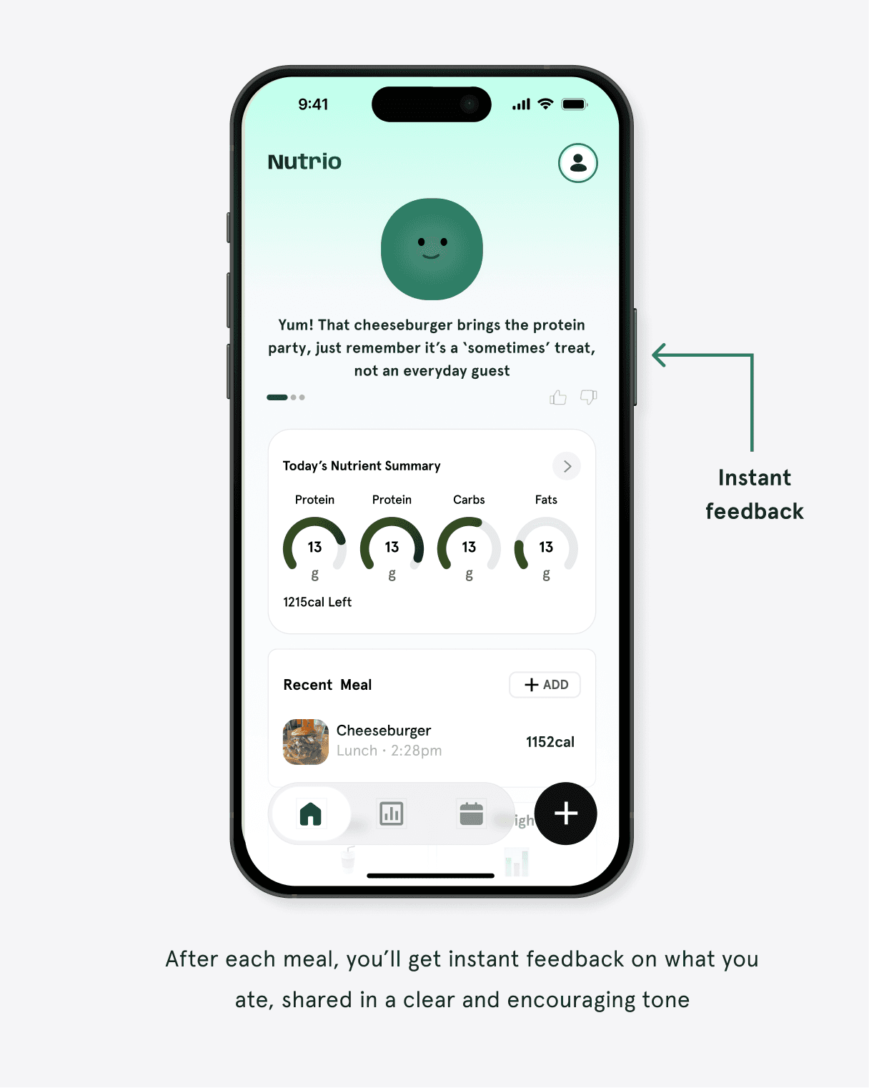 Instead of presenting raw nutritional data, Nutrio introduces an AI food coach that provides real-time guidance. By proactively adapting to users’ eating habits, Nutrio goes beyond static statistics and clearly guides users on what to do nex